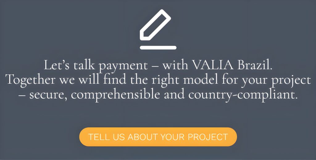 Very secure – as long as they are professionally structured. VALIA Brazil works with experienced partners, established payment service providers and clear contracts. Through stage models with proof of payment and delivery (e.g. via tracking & documentation), we offer maximum transparency and risk minimization – even without L/C.