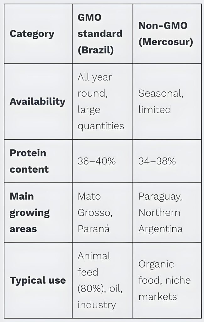 - Non-GMO procurement on request (Paraguay/Argentina)